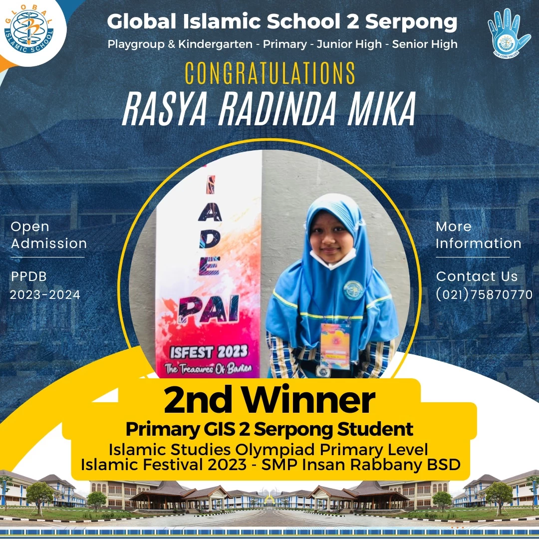 Alhamdulillah, Siswi Primary Global Islamic 2 Serpong Rasya Radinda Mika berhasil meraih juara 2 pada Islamic Studies Olympiad Primary Level -...